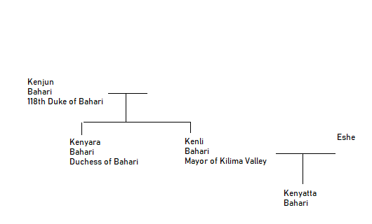Kenli is the mayor of Kilima village. He's the son of the last Duke and brother of the current Duchess of Bahari Province. He seems to be almost incompetant at the role that I am suspecting was thrown at him and he wasn't given a choice. He did finally find the paperwork I needed to sign to get the house. I had to sign in 5!! places on 3 pages. Maybe I should have read what it all said.